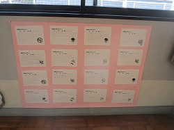 環境委員の取り組みとして、3年生へのメッセージが1階ホールに飾られました。