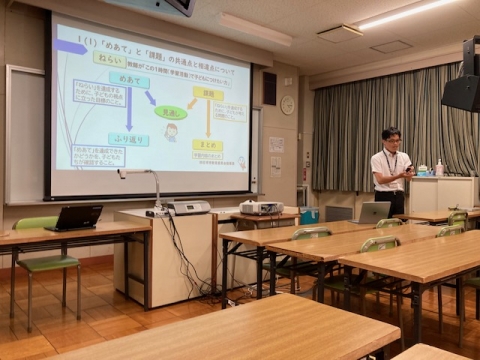 7月8日(月)放課後の校内研修会では、5限目に行った提案授業をもとに、グループメンタリングタイムを行いました。