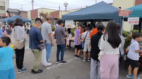 市民センター駐車場のやぐらの周りでは、こども園の園児や「よさこいクラブ」の子どもたちの発表が行われています。お祭りはこの後、15:00まで続く予定です。