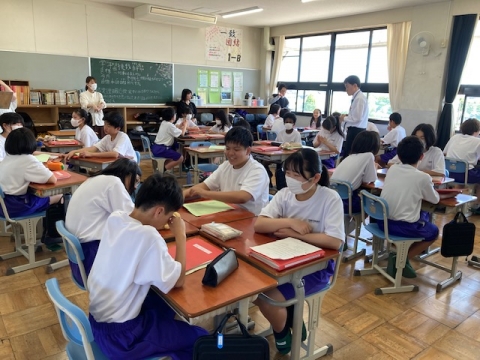 6月5日(水)5限目。3年と1年の英語科の公開授業を実施しました。(3Bと1Bのみなさん。協力ありがとう。)