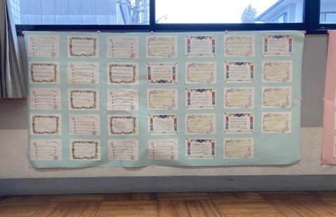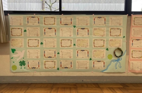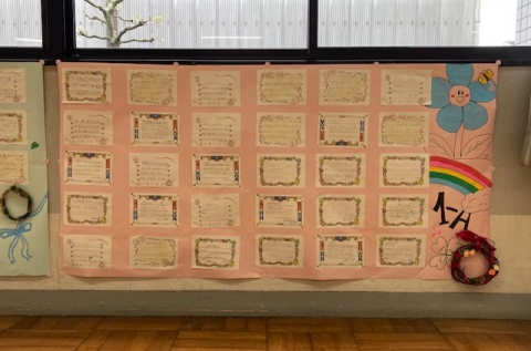 3月3日(月)朝、1階ホールには1・2年生からのメッセージが掲示されていました。