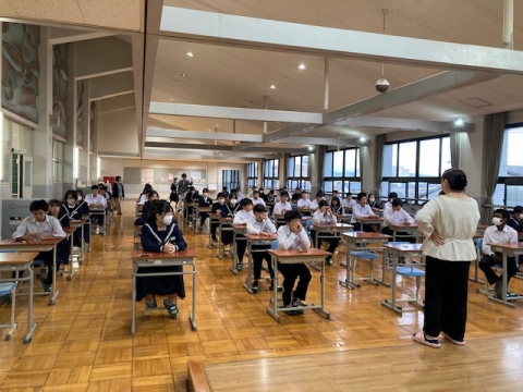 1限目に英検IBAを受けられるよう、朝の会もこの形で行います。