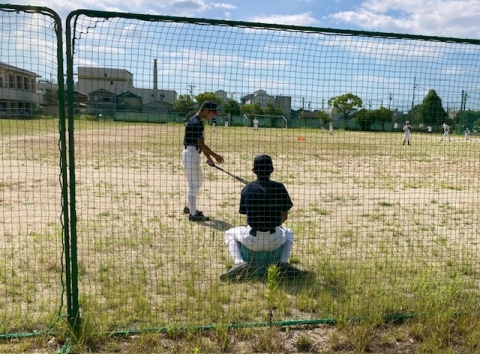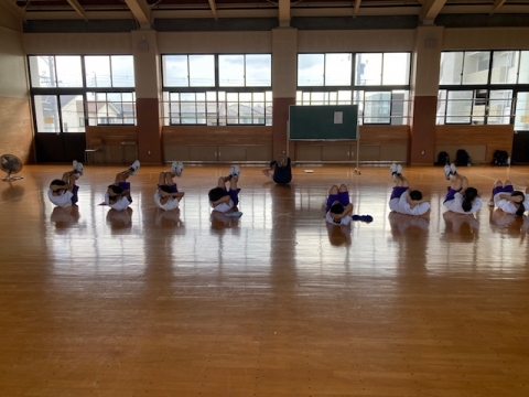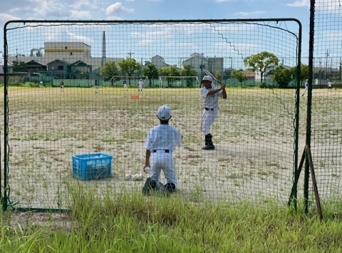 白いユニフォームは羽津中学校のみなさん。合同練習をしています。