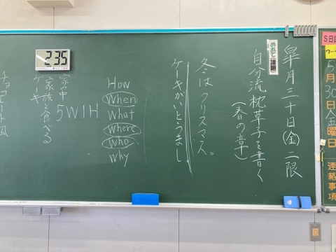 पढाइको विषय माकुरानो सोशी (枕草子, "तकियाको पुस्तक") थियो। यस कक्षामा विद्यार्थीहरूले आफ्नै शैलीमा वसन्तको अध्याय लेख्ने प्रदर्शन-आधारित कार्य (performance task) गरे।