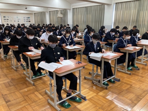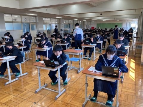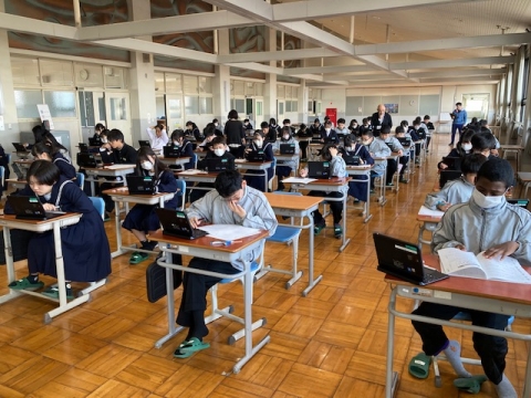 On Thursday, April 17, third-year students will take the National Academic Ability and Learning Survey. Japanese and Math will be conducted on paper, while Science and the questionnaire will be conducted on tablets. This survey is conducted annually by the Ministry of Education, Culture, Sports, Science and Technology for all sixth-grade elementary school students and third-year junior high school students across the country.