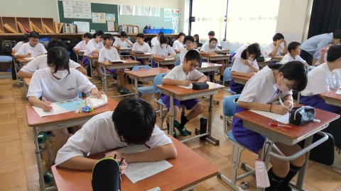 On Friday, September 19, during the 6th period, the 1st-year students are engaging in a human rights learning activity to experience sympathy and empathy, titled “What does it mean to think from another person’s perspective?”