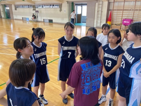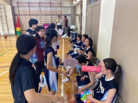 バスケットボール部。大池中学校との激戦の間の一コマ。