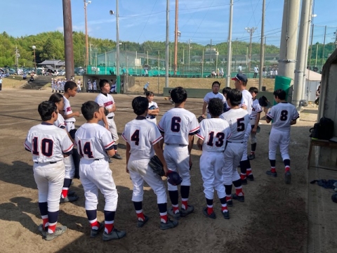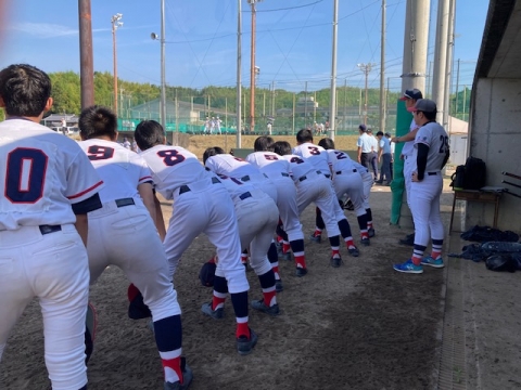 野球部は朝明中学校・西朝明中学校の合同チームと対戦しました。5回の表を終わった時点で8対5でリードしていましたが、その裏で得点を許し、8対10で敗れました。