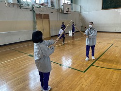 1年生は初めての剣道に挑戦していました。剣道(武道)は、伝統的に精神的な面を尊重する考え方が重視され、より修養的あるいは鍛錬的な目的と礼に始まり礼に終わるといわれるように礼法を特に重要視している部分があります。