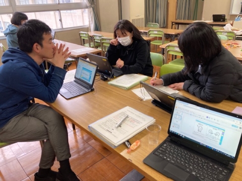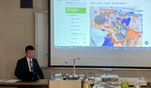 3月12日(水)放課後、校内研修会を行いました。富洲原中学校の今年度の研修テーマは「InputとOutputが循環できる授業の創造に向けて」です。