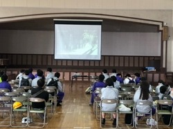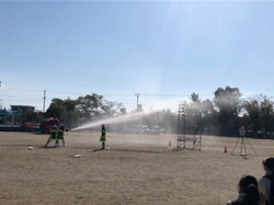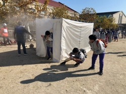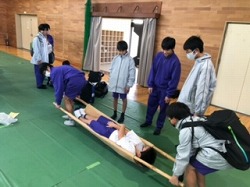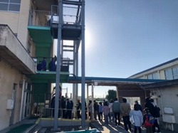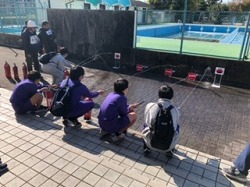 コロナ前に行われていた地区防災訓練が久しぶりに行われました。中学生は土曜授業として参加しました。第一避難所から中学校の屋上へ避難し、その後、小学校で「放水体験」・「煙道体験」・「防災倉庫見学」など様々な防災についての体験を行いました。