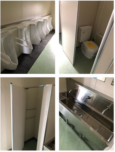 ※トイレの改修工事も最終段階となりました。便器だけではなく床や扉もきれいになっています。