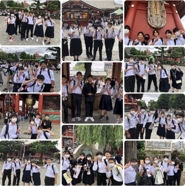 浅草分散学習では、浅草寺・仲見世などの見学や買い物のほかに、いくつかの課題学習に取り組んでいます。中でも日本に来た外国人観光客に英語で質問を行うミッションについて、生徒達は積極的に取り組んでいました。日頃の英語の授業の成果を発揮してほしいと思います。