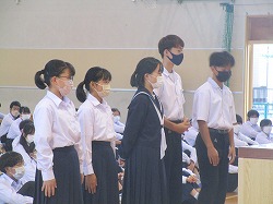 後期の生徒会役員・学級役員・専門委員の認証式を行いました。