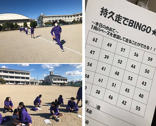 楽しい持久走の授業が3年生で行われていました。