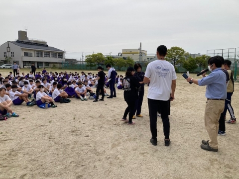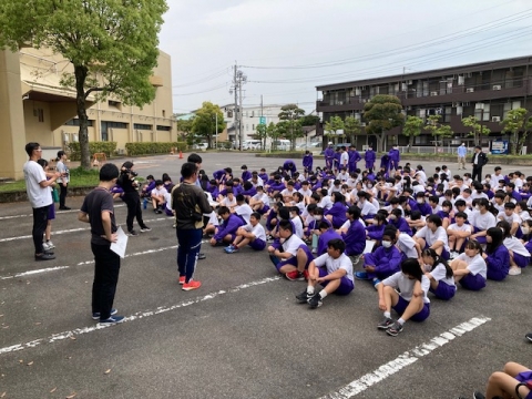 5月19日(月)8:49、南海トラフ地震を想定した訓練を行いました。前回と同様、机の下で揺れが収まるのを待ち、合図で運動場へ一次避難します。ここまでは、4月9日(水)に行った第1回の避難訓練と同じです。