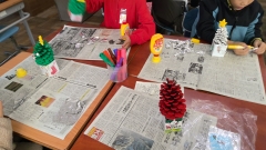 4年生の図工では、画用紙に主人公のパーツを作り、それをわりピンでとめて、いろいろな動きができるようにします。完成した作品は、少しずつ動きを変えていき、写真を撮ってアニメーションのような作品を作る予定です。今日は、まず作品の主人公づくりをしていました。どこを動かせるようにするとよいのか、どのように止めるといいのかを考えながら真剣に取り組んでいました。どんなアニメーションができるのかとても楽しみです。