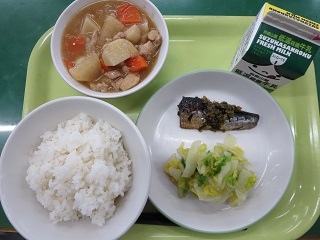今日はどのおかずもとてもおいしかったです。やはりいわしのピリ辛煮は人気でした。ごはんがすすむおかずだったので、減らしにくる子もほとんどいませんでした。ごちそうさまでした。(6A)