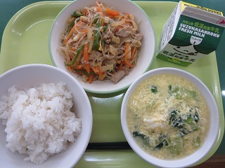 チャプチェ、卵スープ共にたくさんの児童がおかわりをしました。とてもおいしかったです。ごちそうさまでした。(4C)