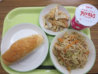 焼きそばはおかわりをする子が多かったです。はっこう乳も人気で、おかわりのじゃんけん大会になりました。美味しくいただきました!(4B)