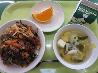 キムチビビンバ、とってもおいしかったです。大人気メニューで、子どもたちも大満足な様子でした!(4C)