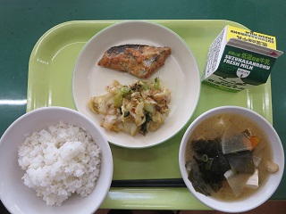 寒くなってきたので、温かいみそ汁は体にしみますね・・・さわらの香味あげも大人気でした!少しずつ減らす量も減ってきたと思います。ごちそうさまでした。(1B)