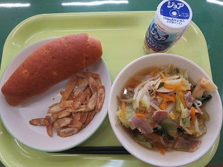 今日は子どもたちに人気のメニューで、おかわりをする子がたくさんいました。ラーメンは温かく、とても美味しかったです。(4A)