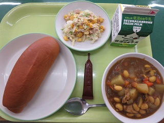 1年生はミルメークに大興奮でした。豆が嫌いな子もカレー煮なら食べられる!という子が多かったです。ごちそうさまでした。(1B)