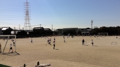 今日はとても暖かく春を感じる陽気です。花壇のチューリップの花も咲き始めました。休み時間の子どもたちは、ドッジーボールをしたり、遊具で遊んだりと元気に外で遊んでいます。体育の時間には、サッカーをしている姿がよく見られます。
