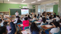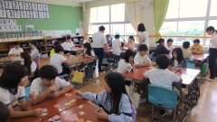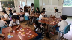 今日は、金融教育に関連する出前授業をしていただきました。お金は大切かという問いには、ほとんどの子どもが大切と回答。でも、お金は好きかと聞かれると、好きという子もいましたが、すべての子が好きというわけではありませんでした。お金の歴史について話を聞いた後、お金がなぜ大切と思うかについて考えました。多くの子どもたちが、「お金がないと物が買えない」「生活ができなくなる」と答えていました。そのあと、物々交換ゲームをカードで体験しました。ゲームはとても盛り上がり、休み時間もやりたいという子がいるほどでした。ゲームを通してお金の役割・価値について気づくことができました。お金を使うときは、必要なものとほしいものを区別する、お金には限りがある、すぐに買わず売っている店を比べる、売る側と買う側には権利と義務があるなど、大切なポイントを教えてもらいました。お金の大切さを理解して、実践できることを期待しています。