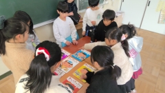 今日の2・3時間目に全校でゲームウォーキングを行いました。今回は、初めての試みで各委員会が中心となってコーナーを企画運営しました。委員会の仕事に関係する内容をクイズにしたり、ゲームにしたりしました。例えば、整美委員会は、毎朝運動場のごみ拾いをしているので、いつも使っているトングとアルミ缶を使ったゴミ拾いゲーム、掲示委員会は、期限の切れたポスターを活用したジクソーパズル、放送委員会は、イントロクイズと早口言葉など、どの委員会もとても工夫した内容でした。上学年は、下学年の子たちを気遣いながらルールを守って楽しく参加することができました。企画してくれた委員会のみなさんお疲れさまでした。