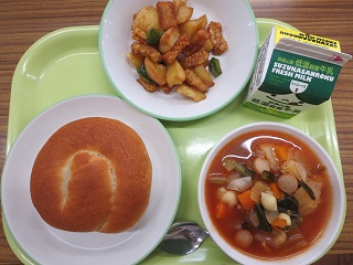 いかと野菜のレモン風味あげが大人気でした。おかわりじゃんけんに負けてくやしがる子がたくさんいました。ごちそうさまでした!(3B)