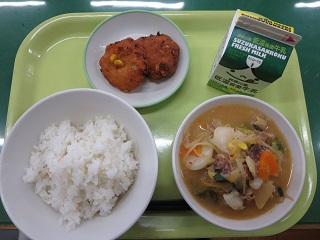 豆腐ナゲットはとても人気がありました。キムチ鍋は少し辛いと感じている子もいました。ごちそうさまでした!(2B)
