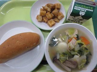 海鮮ちゃんこなべは魚介のだしがきいたおいしいなべで、体も温まりました。おかわりにたくさんの子がきてくれました。ごちそうさまでした!(1A)