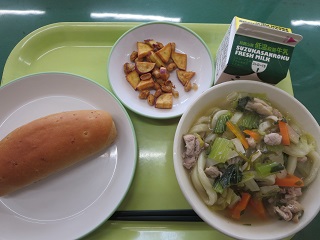 以前好きな給食メニューを聞いたとき、めかぶうどんが大人気でした。今日はおかわりも多く、子どもたちも喜んでいました。ごちそうさまでした!(5A)