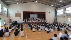 今日の5時間目の始めに、6年生が三泗音楽会で合唱する歌を全校児童へ披露しました。今年度は文化会館の工事の関係で、毎年11月に開催される音楽会が9月開催となりました。そのため、6年生は1学期から合唱の練習に取り組んできました。声に強弱があり、パートの響きもきれいで、素敵な合唱でした。1~5年生の子どもたちも、とても真剣な表情で歌声を聞くことができました。6年生のみんなへ大きな拍手でエールを送りました。