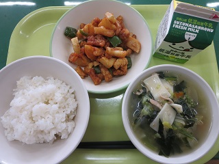 今日のメニューは好きな子が多く、おかわりをする子がたくさんいました。減らす子が少なかったので、おかわりしたい子を満足させることができないくらい人気メニューでした。ごちそうさまでした!(1A)