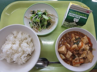マーボー豆腐はたくさんおかわりをしていました。思ったより豆腐が苦手な子が少なかったです。(3A)