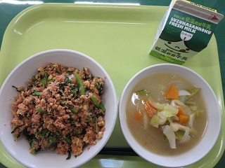 野菜嫌いの子がたくさんいるようで、春野菜のみそ汁を減らす子がたくさんいました。(2B)