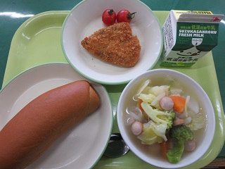 かつおフライは子どもたちに大人気でした!ポトフも喜んで食べていました。いつもおいしい給食をありがとうございます。(2B)