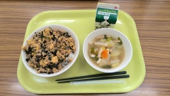 ツナの三色丼 牛乳
