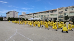 4時間目(中学年)です。初めて法被を着て踊りました。背中には自分の名前の漢字一文字が書かれています。