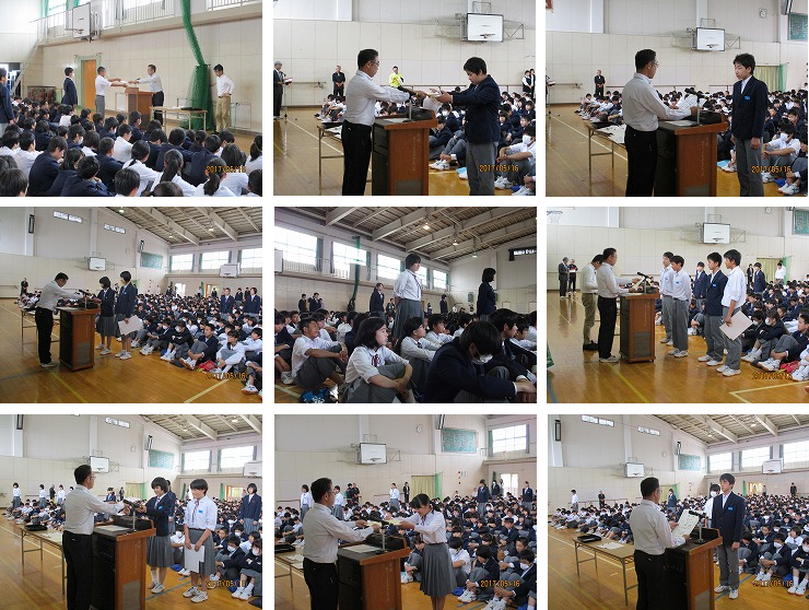 今回は8つの部活動が表彰されました。また、個人で、最優秀選手に選ばれた生徒もたくさんいました。(表彰の詳細については、5月下旬の「学校だより」で掲載されます)