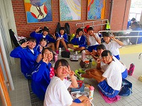 まずは,昼食を食べないと何もできません。ということで、まずはみんなでお弁当 !! みんなで食べるお弁当は、格別のようです。