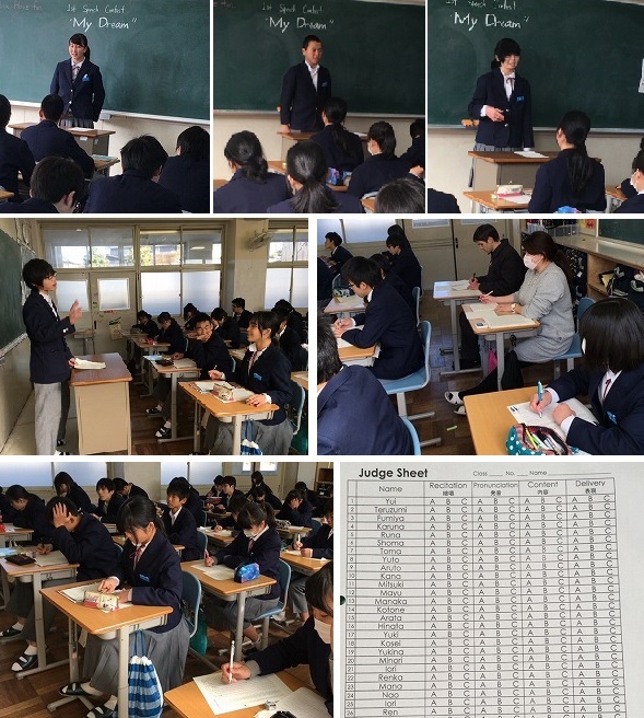 聞いている人は,そのスピーチを採点(評価)します。話す力・聞く力の両方を鍛える取り組みです。