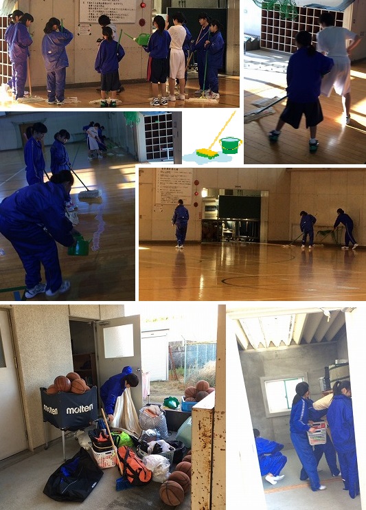 お世話になった体育館をきれいにワックスがけです。部室もきれいに整理・整頓。