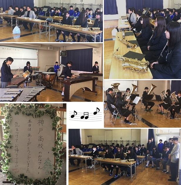 吹奏楽部は,神戸高校さんと合同でプチコンサートを行いました。