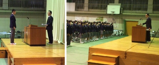 同窓会会長に代わって,校長先生より,3年生全員の同窓会入会が認められました。