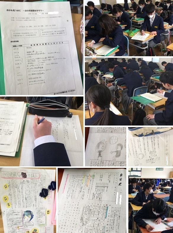 義務教育の修了を控えた3年生は,「自分史」の作成中です。