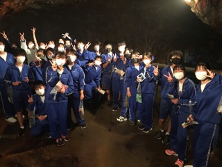 2日目、班別分散学習「熊野古道グループ」。雨天のため、行程を変更して出発しました。まずは、三段壁洞窟からです。荒天ならではの迫力!自然のエネルギーを感じています。